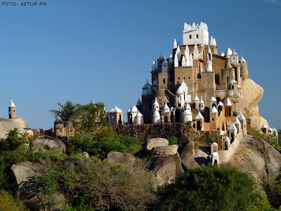De repente você avista um castelo erguido no alto da serra ao lado de uma estrada que corta as terras de Sitio Novo, uma região pobre nos limites do agreste e do sertão do Rio Grande do Norte a 104 km de Natal. E lá está no alto da serra dos Tapuias, quase 400 metros acima do nível do mar, lembrando de longe os velhos castelos das montanhas da Europa: um castelo feito de pedra e cal, fruto dos sonhos e do ideal de Zé do Monte que é a grande atração no alto da Serra dos Tapuias.